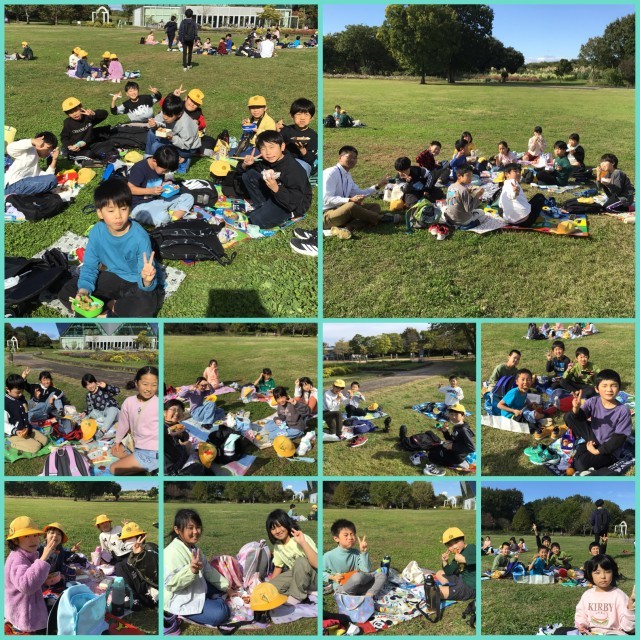 フラワーパークでのお昼ご飯も青空と芝生に囲まれて楽しい時間になりました。朝からお弁当や準備などありがとうございました。ぜひ、今日の校外学習で学んだことを、ご家庭で話題にしていただけると幸いです。