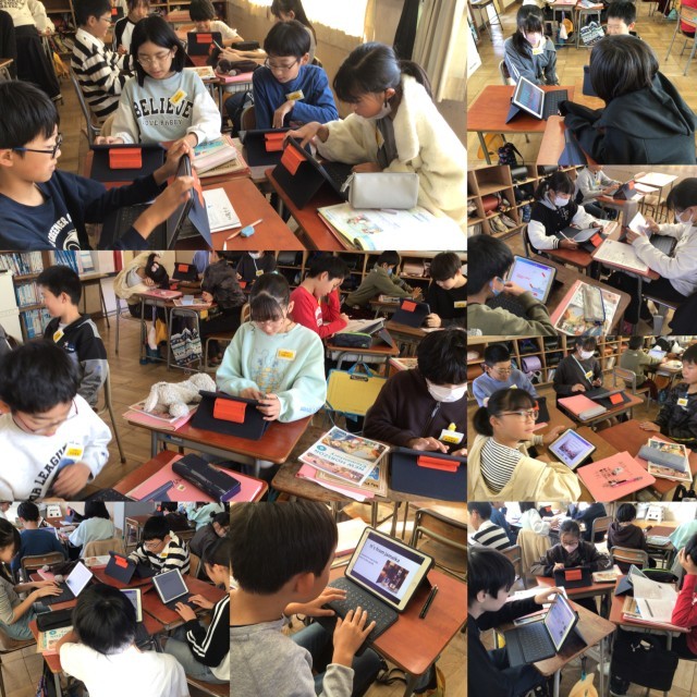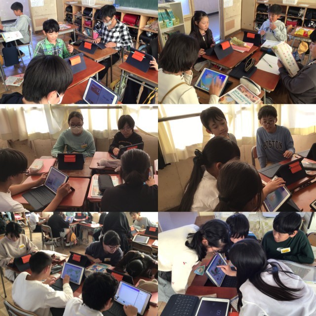 Unit5「Where is it from?」の学習で、グループ発表の準備をしています。