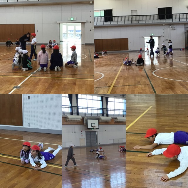 4時間目の体育の様子です。はじめに、「トムとジェリー」というゲームで、体を動かしました。トム役の子から逃げつつ、無事に逃げ切れるのか、盛り上がってました。その後、ボールを蹴る練習をしました。つま先、足の側面をつかって、相手にうまくパスを送っていました。
