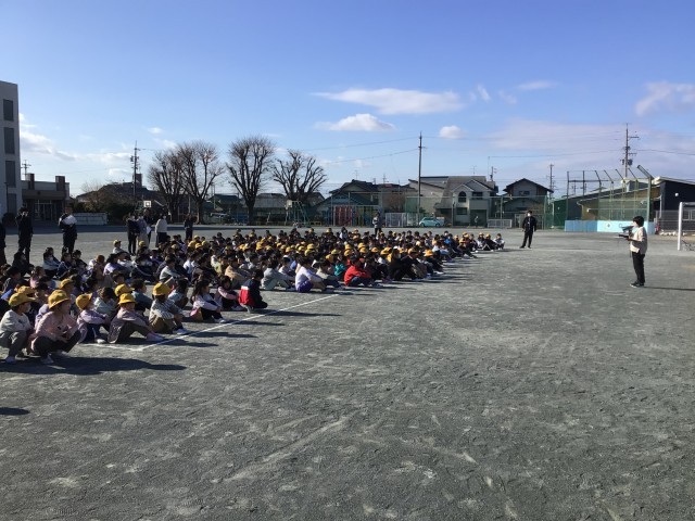 掃除の時間に急に訓練が始まりましたが、高学年が低学年の子にシェイクアウトのやり方を教えながら、訓練に取り組む様子などが見られました。