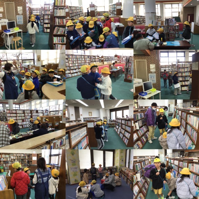 今日は、図書館見学に行きました。図書館内の様子や工夫を見つけていました。図書館司書の方に質問をする子もいました。本の修繕の様子も見せてもらい、メモに記録しました。