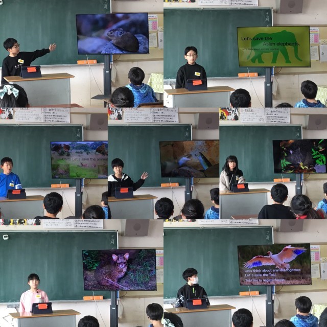 Unit6の“Save the animals.”の学習で、絶滅危惧種について発表しました。
