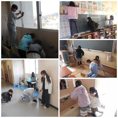台の下の掃除や黒板の水ぶき、窓ふきなど、普段の掃除以上にきれいにできました。