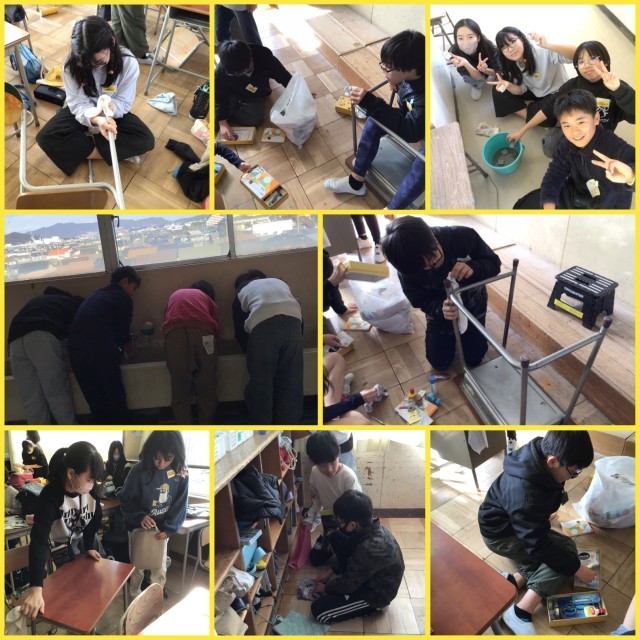 教室では、机やロッカー、普段手が行き届かないところまでキレイにし、心もスッキリ、1年を締めくくることができましたね。