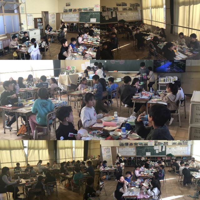 冬休み明けの登校。友達と楽しく過ごしていました。久しぶりの給食、美味しかったですね。