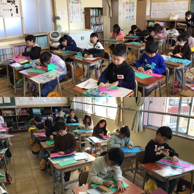 2・3時間目に、図工の「まどをあけたら」の学習をしました。カッターの使い方も上手になりました。作品も少しずつ立体になってきました。