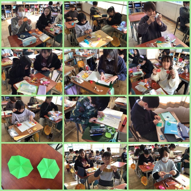 今日から新しい単元「円と正多角形」に入りました。折り紙を使って、正六角形と正八角形を作りました。辺の長さや角度に着目して、図形の特徴について考えました。
