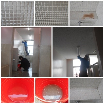 換気扇、排水溝、天井付近の壁、タイルなどをきれいにしました。