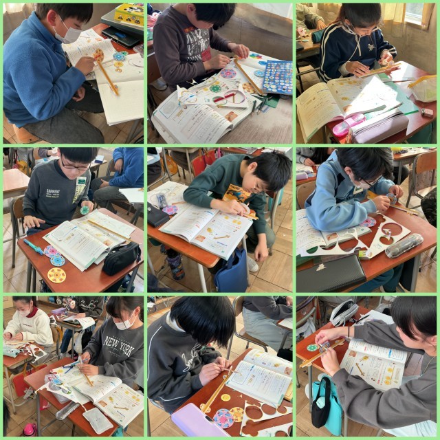 算数では「円と正多角形」の単元に取り組んでいます。今日の授業では、円周がいくつになるのかを、円周測定マシンを使って測りました。次回の授業では、円周が直径の何倍になっているのかを計算していきます。