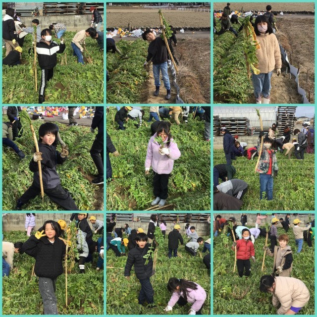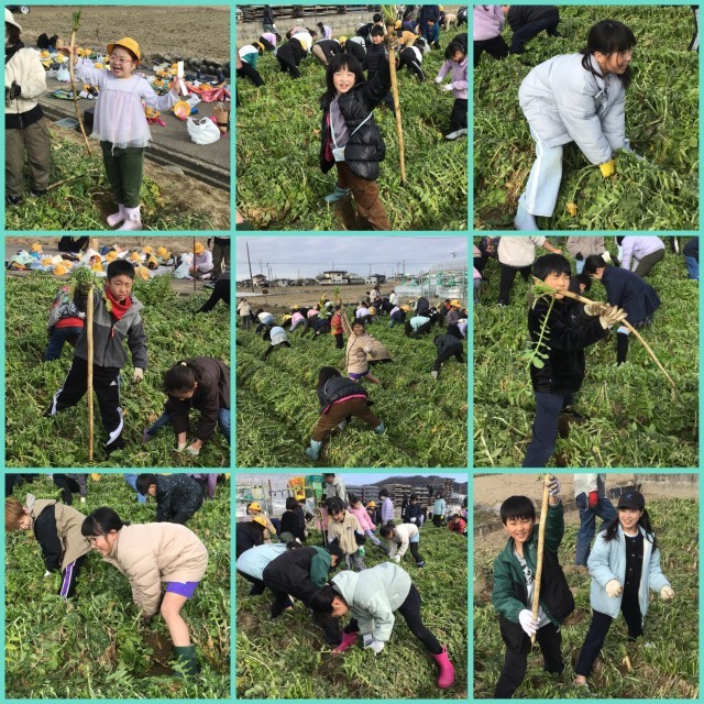 10月に種を植えた守口大根の収穫をしました。天気にも恵まれ、学校を出発する前からワクワクする様子が見られました。