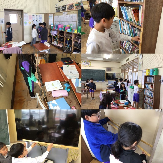 算数で長さの学習をしました。1mはどれぐらいの長さなのか体験しました。「1mってもう少し長いんだ」「あー惜しかった」と1mの長さを確認しました。その後、1m定規を使って、教室内で1mの長さのものを探しました。