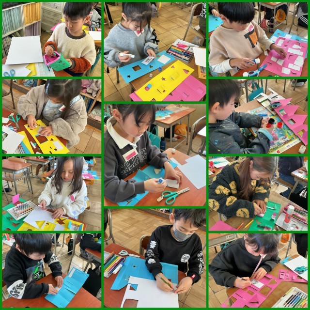今日は、窓の奥を付け、イラストを描いたり、台紙を飾り付けしたりしました。