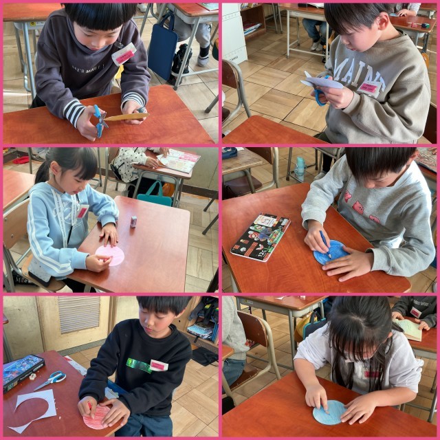 6年生を送る会に向けて、招待メダルを作りました。心を込めて、色を塗り、丁寧にハサミで切りました。