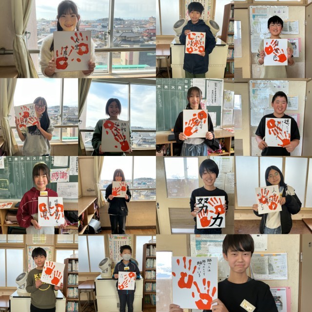 感謝の会で押していただいた家族の手形に「座右の銘」を書きました。