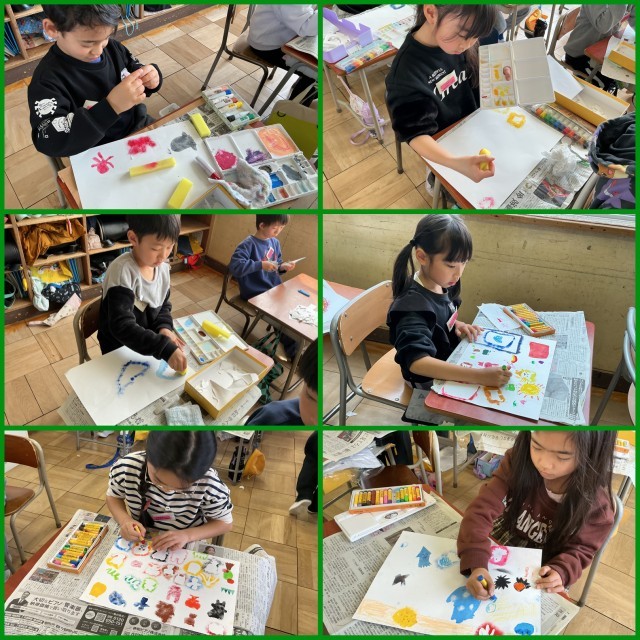 最後に、クレヨンで仕上げをしました。