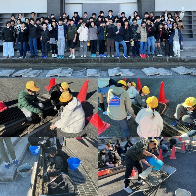 学年の奉仕活動として、運動場の側溝の掃除をしました。
