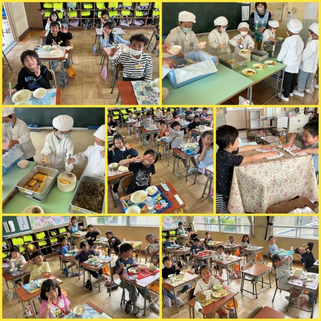 初めてのことでも素早く丁寧に取り組む1年生の力にびっくり!みんなのおかげで笑顔で給食を食べることができました♪