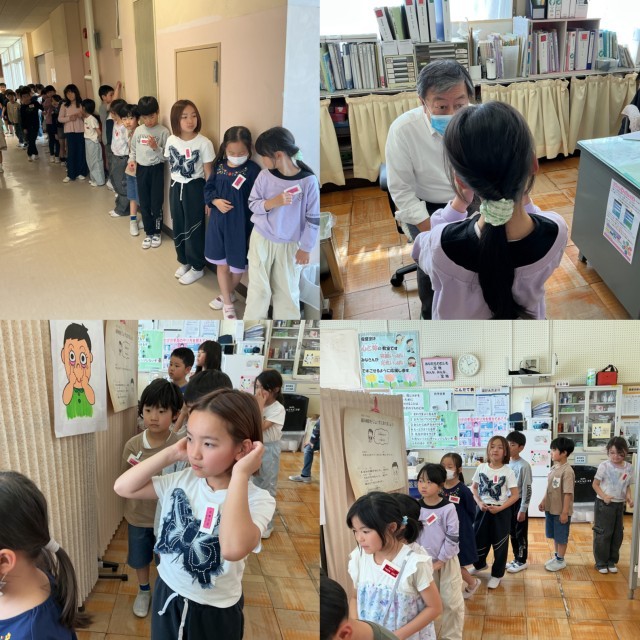 低学年のリーダーとして列を整えたり、前の人の様子を見てやり方を覚えたりしています。