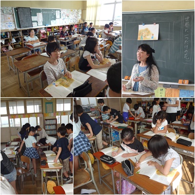 槇原敬之さん作詞の「世界に一つだけの花」をつかって、クラスの子一人一人がもつ違う種を探して、ワークシートに書いていました。