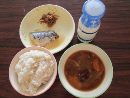麦ごはん さわらの照り焼き 牛乳 きんぴらごぼう さつま汁