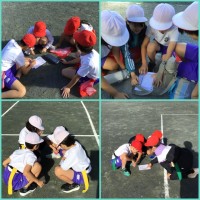 3−2は、小学校の北側とに西側を中心に、校外探検に出かけました。