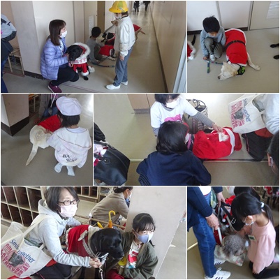 特別支援学級では、定期的にセラピードッグを行っています。休み時間には、多くの子が近くに来て、癒やされていました。
