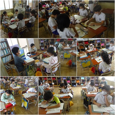 動画や写真を見ながら、スーパーマーケットや専門店のひみつについて考えました。たくさんの工夫などに気付き、50個以上見つけ子もいました。今度、買い物へ行ったときにも探してみましょう。