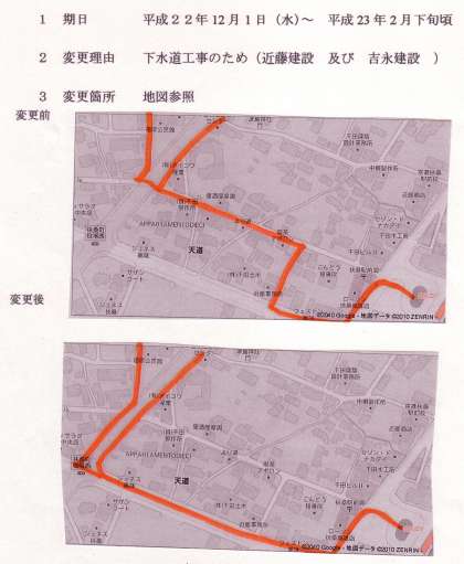 福塚1班〜5班の通学路を下記のように変更をします。地域でも見守っていただきますように,お願い致します。