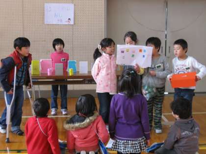 2年生は,おもちゃフェスティバルのために少しずつ準備をしてきました。ゲーム用具を作ることはもちろん,お店のポスター作り,ゲームを説明する文と図,参加者への景品など,1年生の笑顔が見たくて一生懸命に工夫してきました。満足そうな1年生の笑顔に,2年生からも笑顔がこぼれていました。