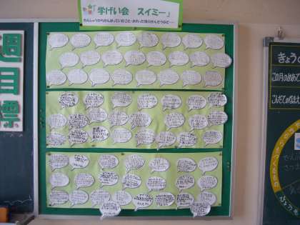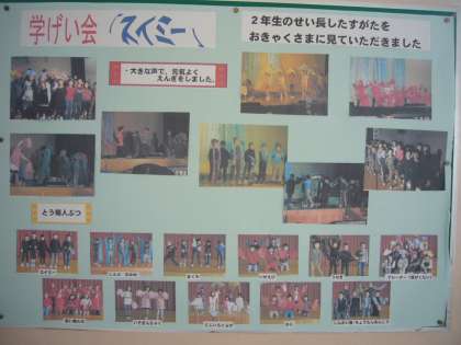 2年生では,学芸会の思い出写真と,全員の振り返りを掲示しています。