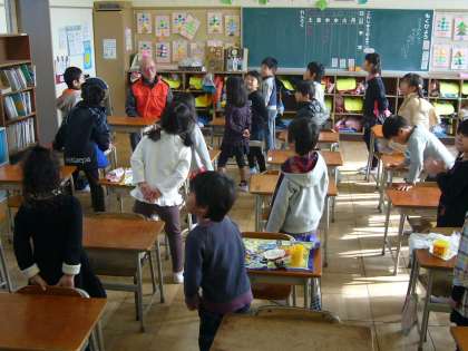 写真は,給食後に各学級で行われた感謝の気持ちを表す取り組みの様子です。