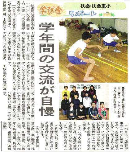 12月21日付け朝刊に扶桑東小学校の記事が掲載されました。記事の内容は,4年〜6年の運営委員会のメンバーが知恵を絞って書き上げたものです。