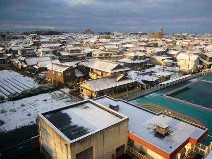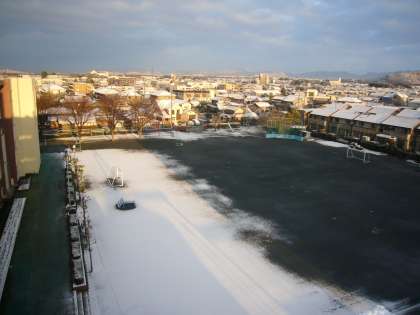 7時30分頃からわずかの時間,朝日が扶桑東小学校を照らしました。