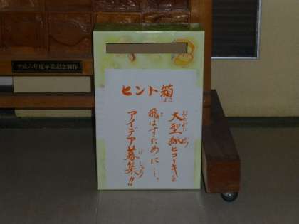 ひらめいたら校長室の前のポストに,アイデアを教えてください。