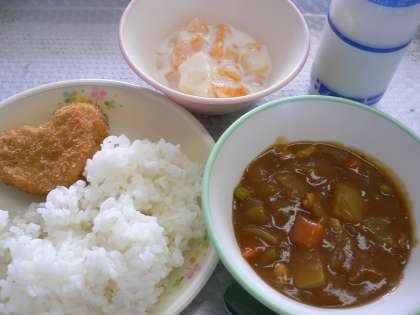 副菜:チキンカレー デザート:フルーツヨーグルト