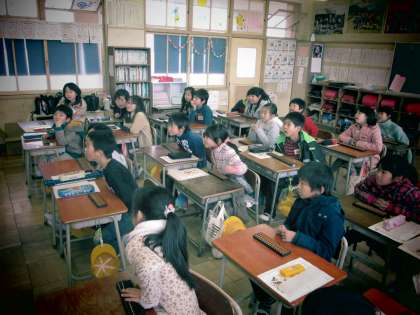 初めてそろばんを使う子が多く、昔のそろばんを見せてもらったときは身を乗り出して見ていました。