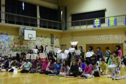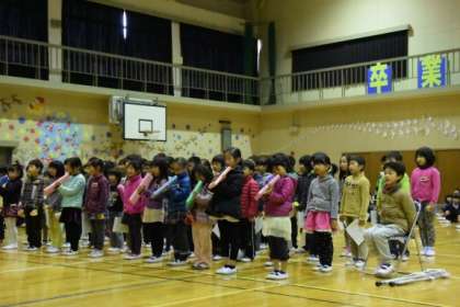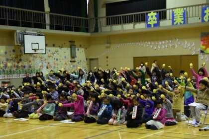 6年生のお兄さんやお姉さんが、たんぽぽのように飛び立って、がんばってほしいという思いを届けました。