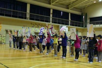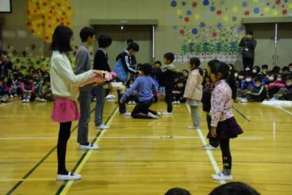 1年生は、「「おもちゃのチャチャチャ」の替え歌を歌いました。初めて参加する「祝う会」だったので、緊張しながらも練習の成果をしっかり発揮することができました。
