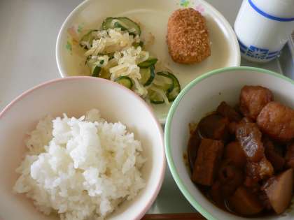 今日の給食は、ほっこり温かな、みそおでんでした。