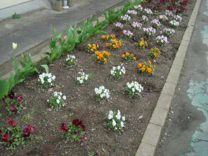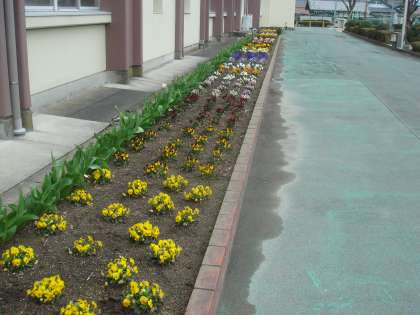 校舎裏の花壇もきれいに咲きそろっています。