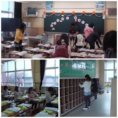 新6年生が月曜日の入学式のために登校して、準備をしてくれました。