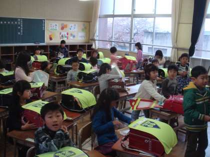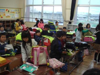 1年生が初めてひとりで教室に入りました。