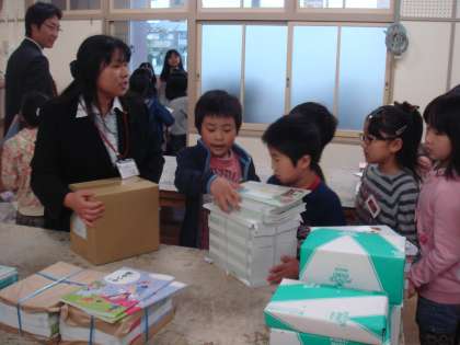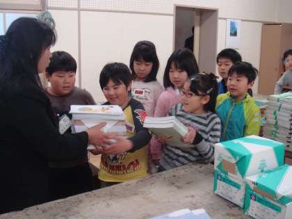 みんなうれしそうに真新しい教科書をもらって、教室にむかっていきました。