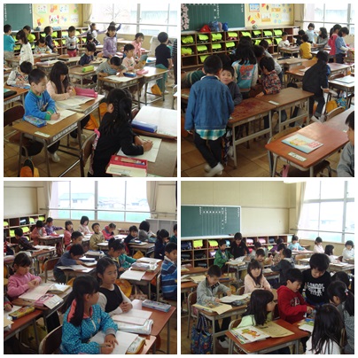 4月7日 各教室で 公開日 2015/04/07 更新日 2015/04/07 お知らせ 始業式の後、各教室をまわってみました。 ちょうど休憩の時間だったので、本を読んだり絵をかいたりする子もいました。 先生の指示でいろいろな決めごとをしている学級、しっかり先生の話を聞いている学級、いろいろでした。 1年生を除いて、あさってからは、もう給食があり、普通授業がはじまります。 新しい先生と、新しい友だちと、新しい生活が始まっていきます。 とても楽しみです。 いいね(0)