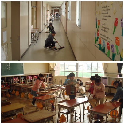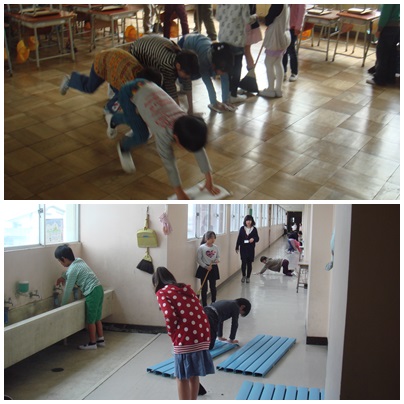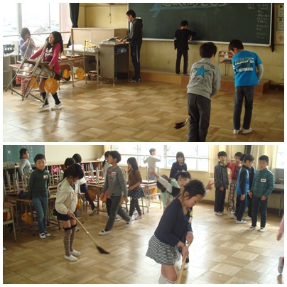 ほうき、ぞうきん、つくえつり、いろいろなポジションに分担してのそうじですが、それぞれ自分の役割を果たしてがんばっていました。