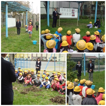 総合学習の一環として、4年生が加藤さんといっしょに植樹をしました。