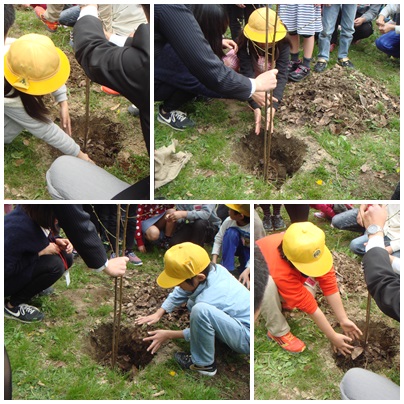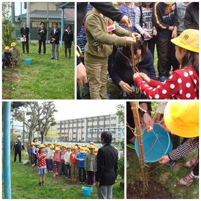 いまは4年生と同じくらいの背の高さですが、卒業する頃にははるか大きくなるようです。これからしっかりと水やりをする必要がありますが、とても楽しみです。