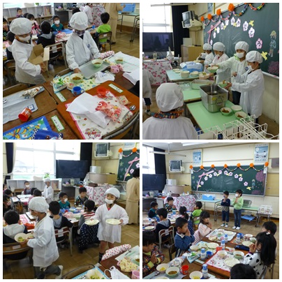 準備ができたクラスから、「いただきます」をしました。