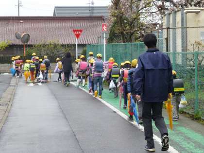 いつものようにスクールガードさんも付き添ってもらって、本当にありがたいです。