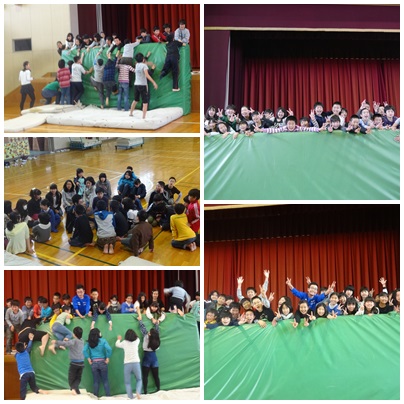 6年生の学年集会。課題は、目の前にそびえ立つウォールをクラス全員で登り切ること。10分間の話し合いのあと、各クラス一致団結して目の前の壁に挑みました。1組も2組も協力し合う姿が見られ、5分以内で全員登ることができました。これから卒業まで、たくさんの壁が立ちはだかると思いますが、今日のように協力して乗り越えていってほしいと思います。
